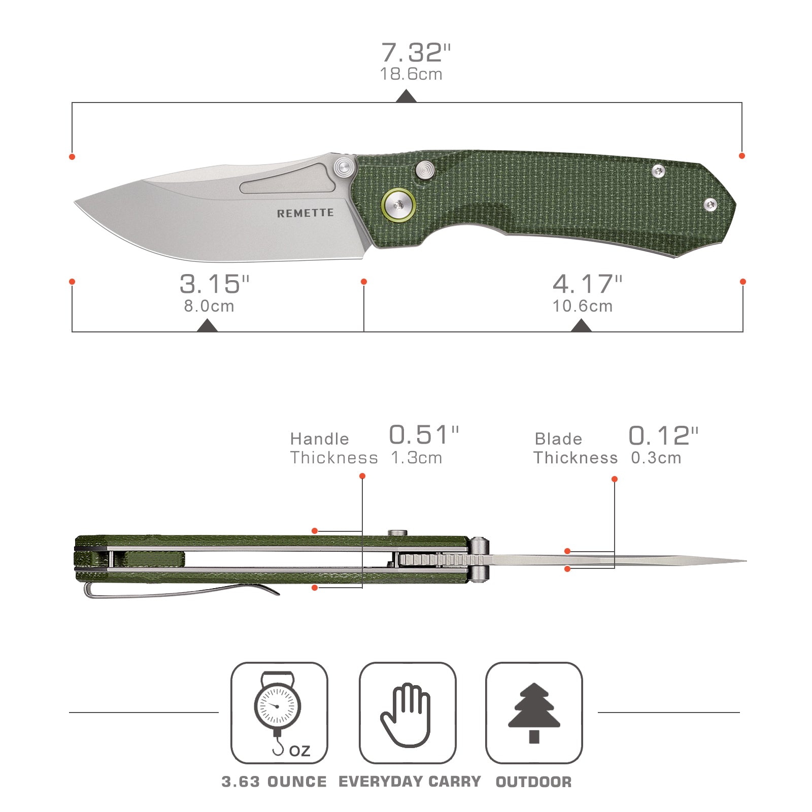 Remette – Stainless Steel – Clip Point Folding Utility – MC319G