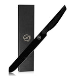 Made from 440C stainless steel and coated in black titanium, the tool of this culinary utensil is durable and corrosion-resistant. The coating keeps the edge sharp for longer while maintaining its sleek black finish.