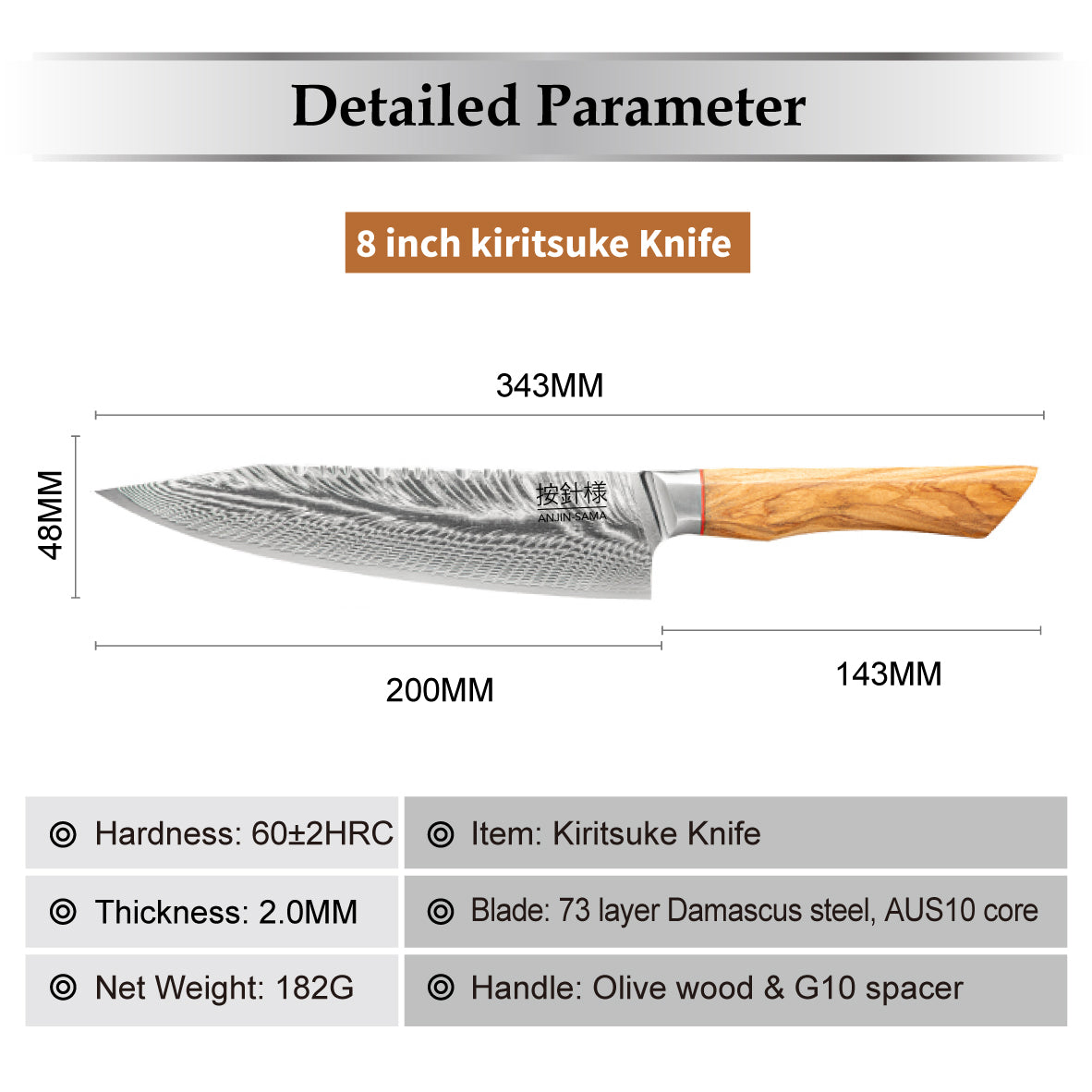 - 1 x Anjin-Sama high-quality 67-Layer Damascus Kiritsuke