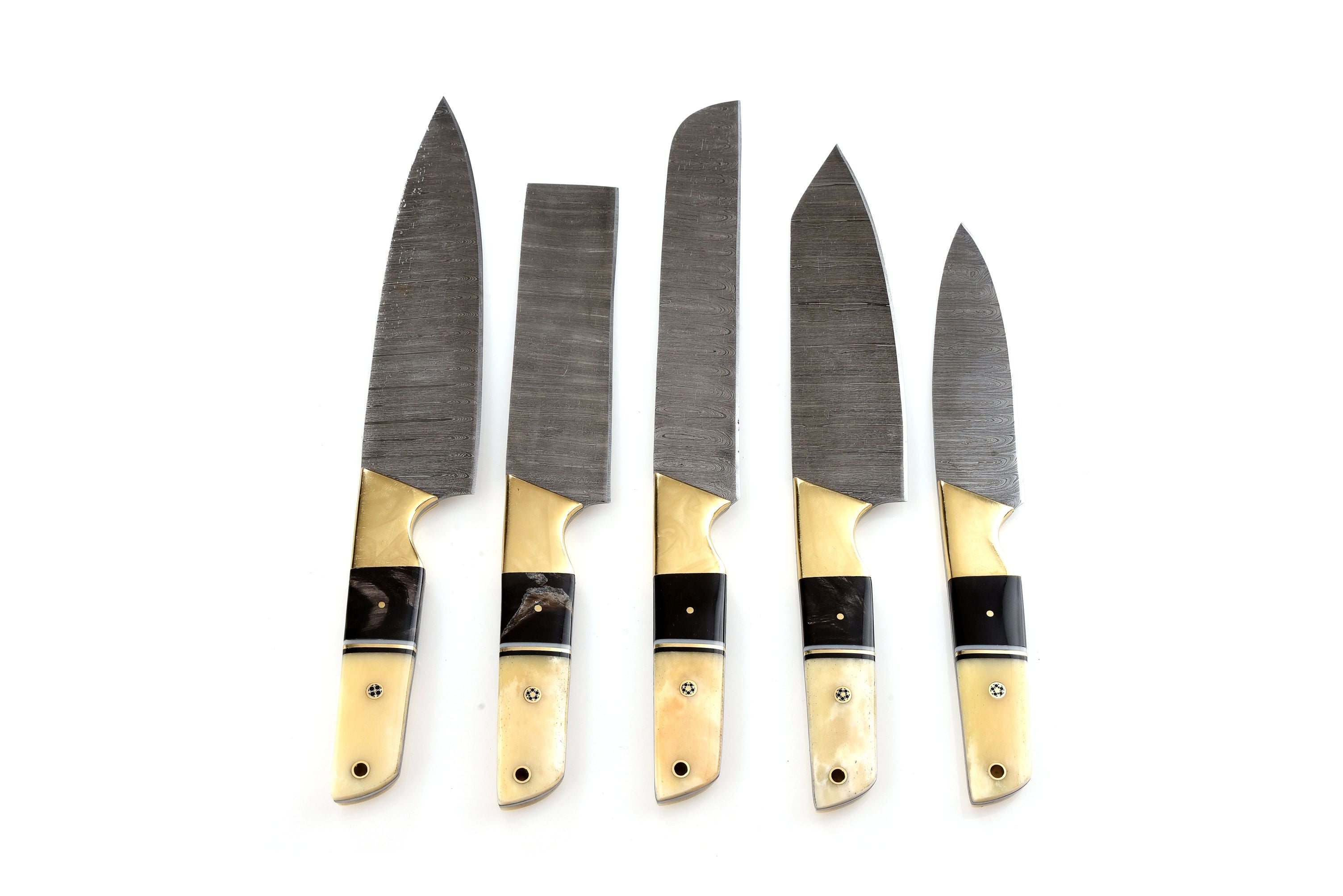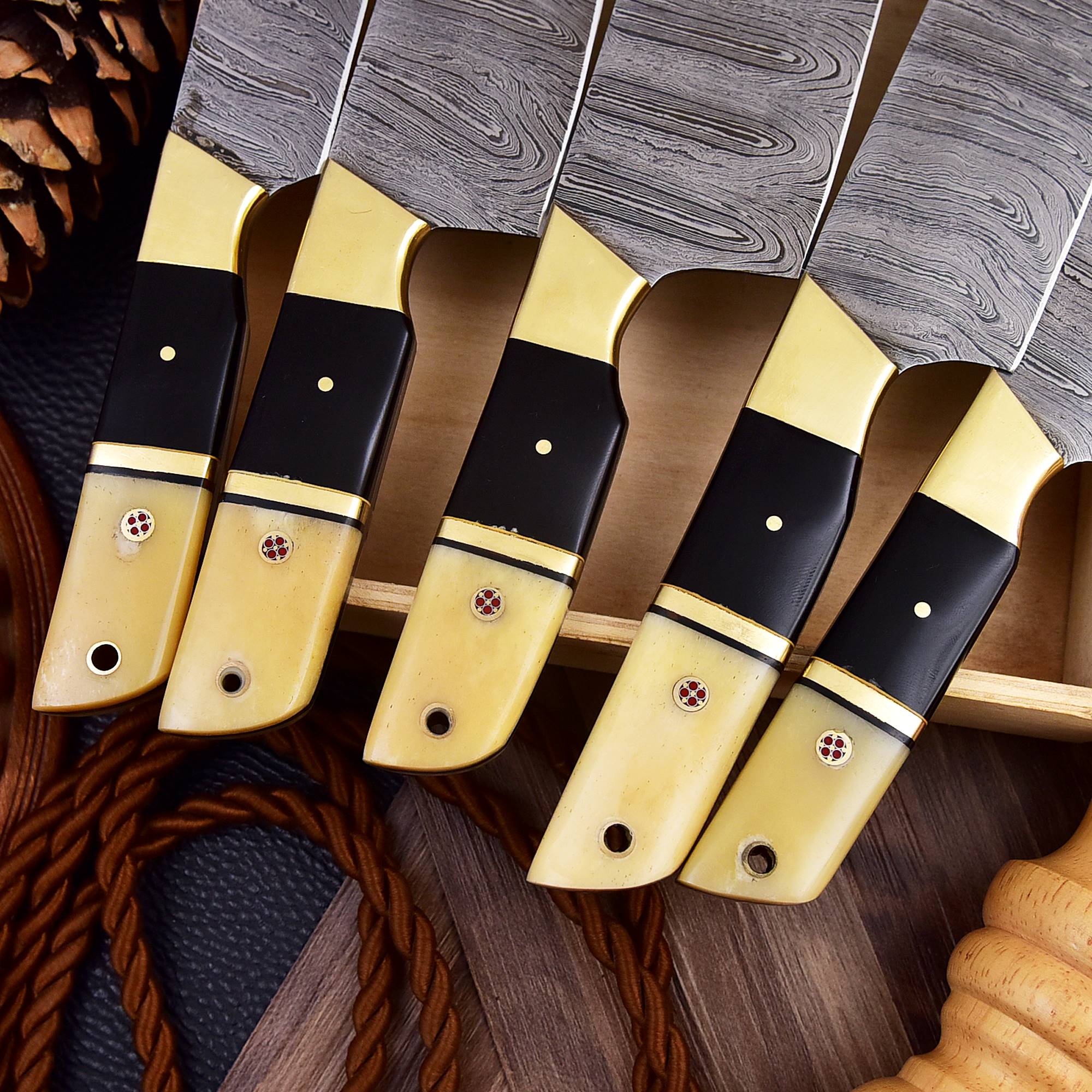 Invest in the Koch 5 Piece Handmade Damascus Chef Set - Bull Horn and Camel Bone and take your culinary skills to the next level.