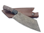 Experience precision and craftsmanship with the Raindrop Damascus Cleaver. Hand-forged from 67 layers of carbon Damascus utensil (1095 & 15N20), this cleaver offers durability, edge retention, and reliable cutting performance. The 165 mm utensil, with a 4 mm thickness and whetstone-sharpened edge, ensures effortless chopping and slicing. The brown micarta handle provides a secure, comfortable grip with excellent longevity. Comes with a genuine leather sheath for safe storage.