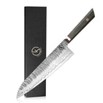 A 9" Gyuto culinary utensil built for fine slicing, featuring a VG10 core and layered Damascus pattern.