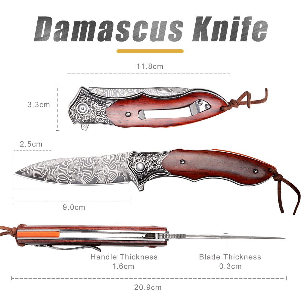 - 1 x KKDK003 Stainless Damascus Folding Tool
