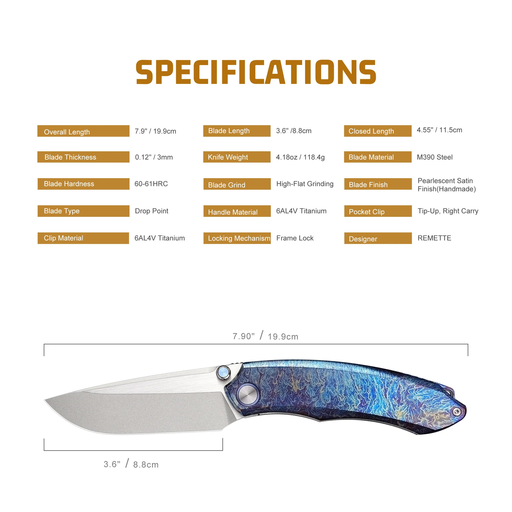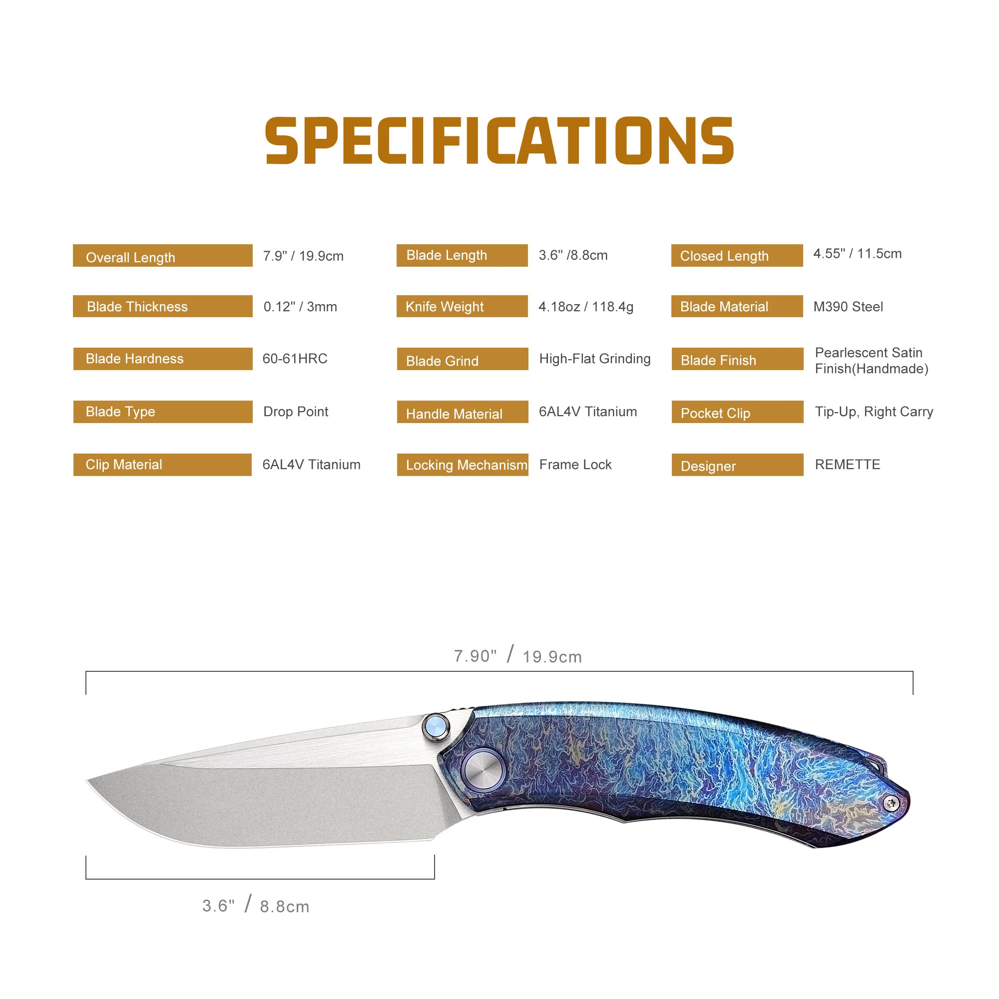 - Clip Material: Titanium