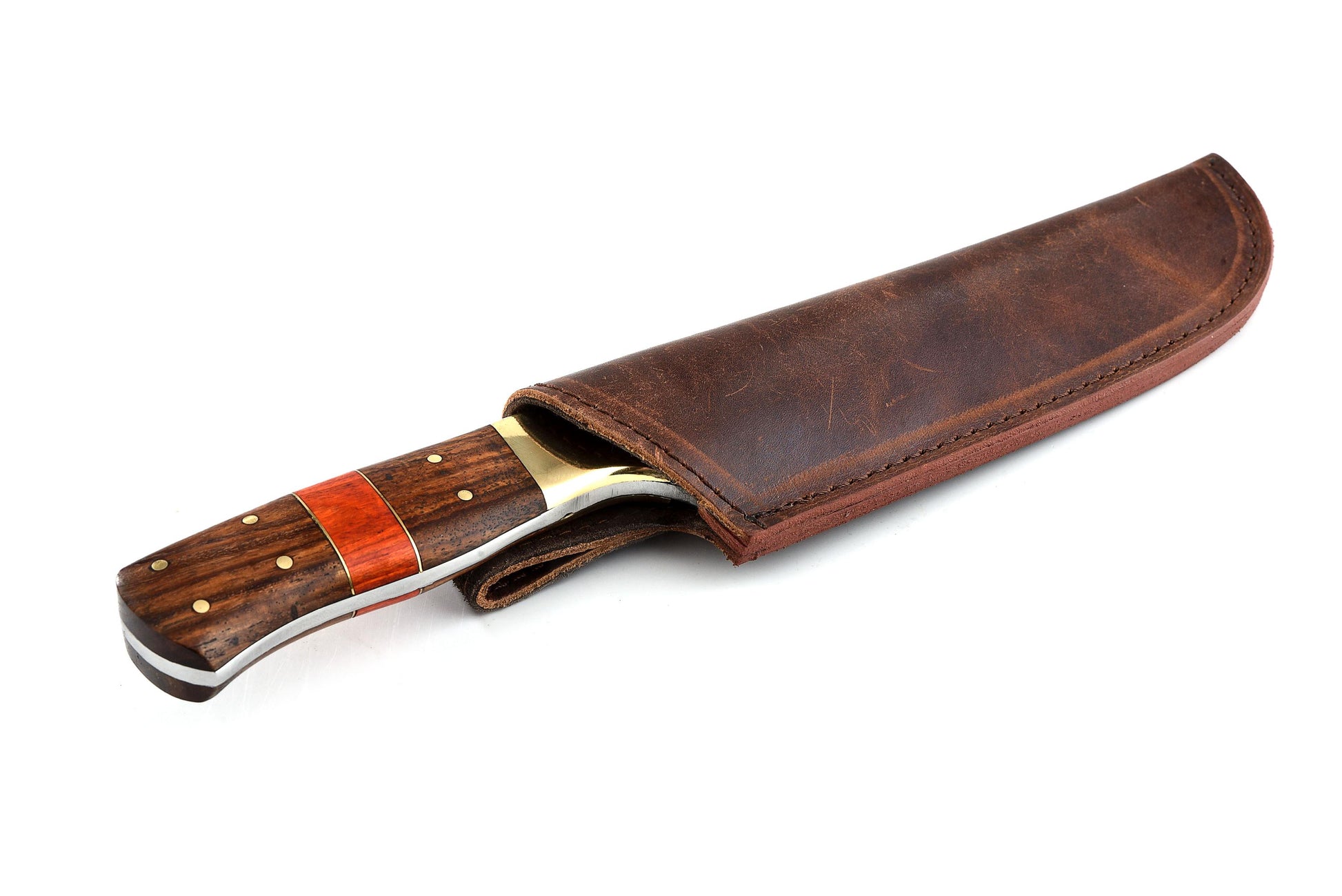 Handle Material: Walnut and Red Pakka Wood with a Brass Bolster