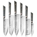Six-piece kitchen utensil set crafted from VG10 Damascus steel. Designed for balanced performance in everyday food prep.