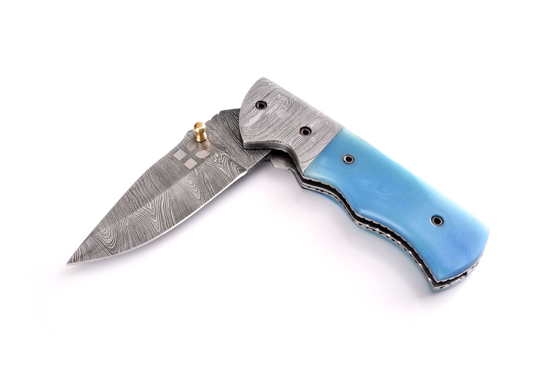 Koch Damascus Biltong Folding Utility Tool (Tinted Camel Bone) YV-F7