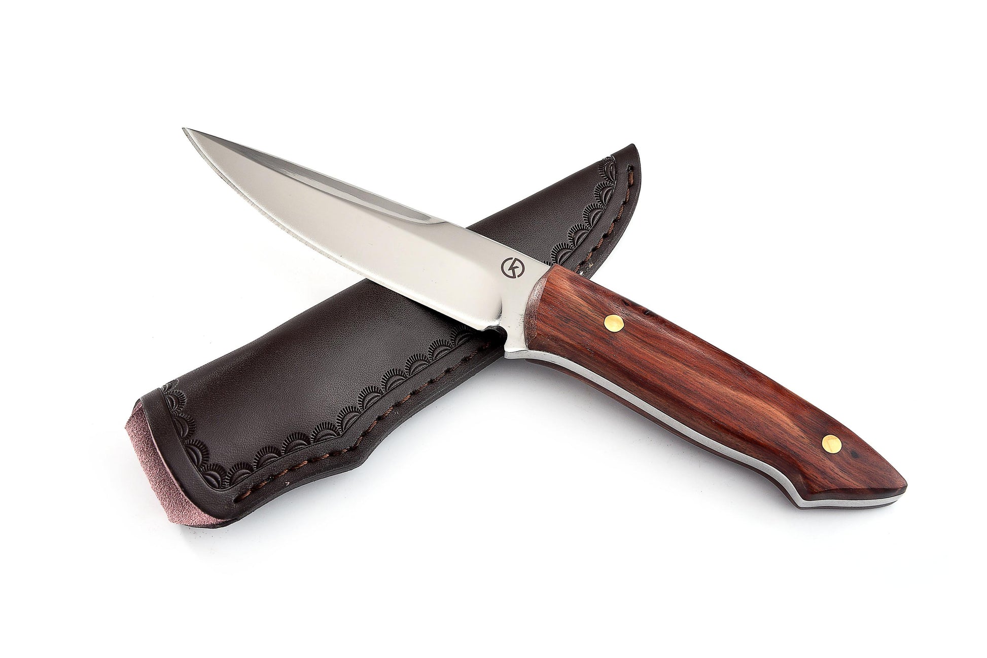 The QY2201 fixed utility tool is a practical option for versatile daily use. It features a robust 440C stainless steel utility, a classic rosewood handle with brass pins, and comes with a durable leather sheath.