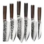 Indulge in the precision and artistry of the Anjin-Sama Japanese carbon steel chef set. This luxury collection combines traditional craftsmanship with modern design, showcasing a hand-forged hammer finish and ergonomic bubinga wood handles.